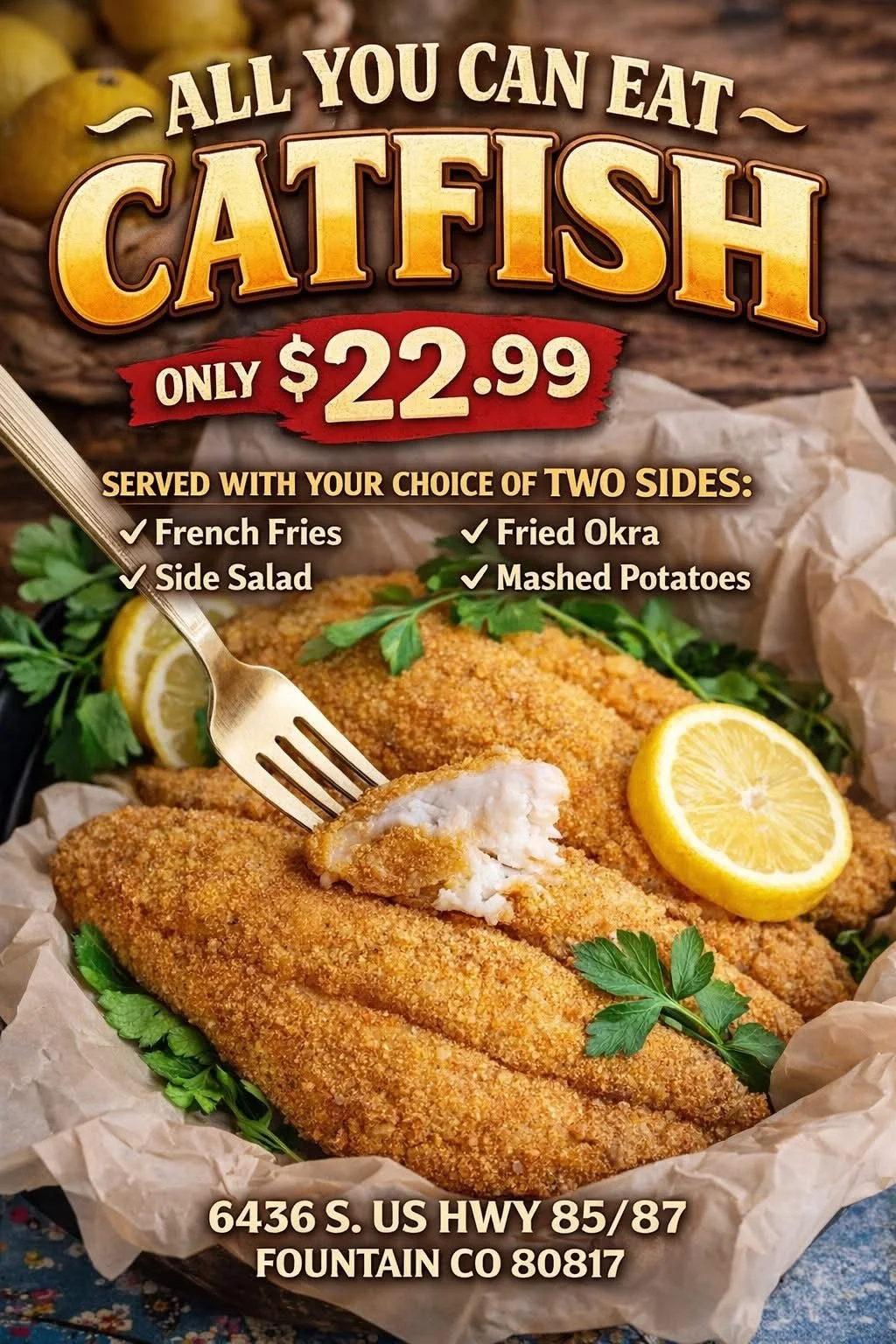 RESERVE YOUR SEAT HERE ALL YOU CAN EAT SHRIMP APRIL 9TH STARTING AT 4PM ALL YOU CAN EAT CATFISH MAY 7TH STARTING AT 4PM Click Here To Reserve Click here to reserve your seat